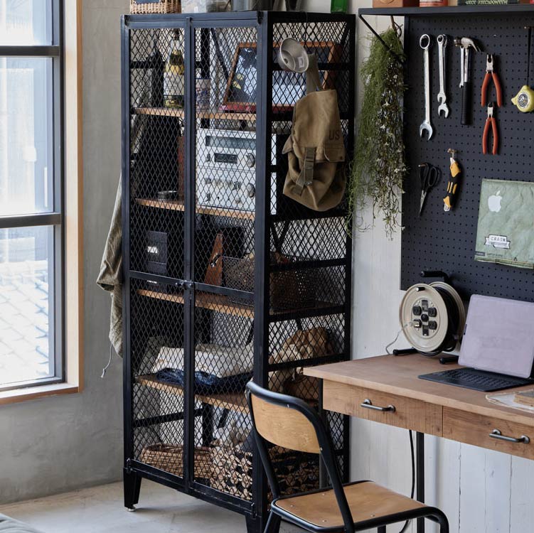| 商品情報 | ラギットでインダストリアルなロッカーキャビネット。棚板にはMDFを 使用し、よりハードな風合いに仕上げています。 |
