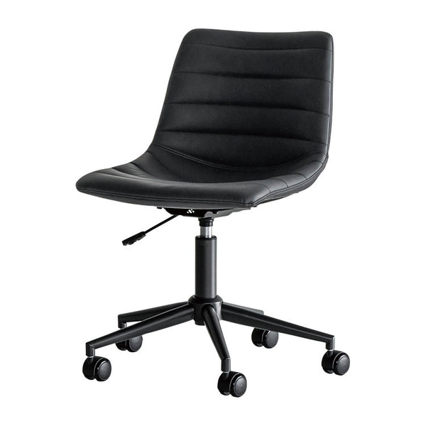 ヴィンテージ調の革のようなファブリックとスチールを組み合わせたデスクチェア。