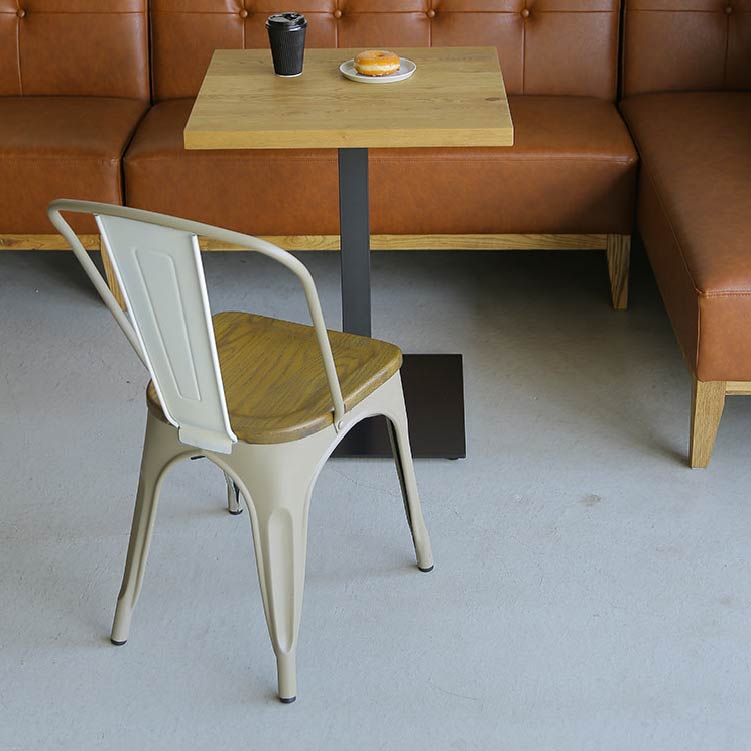 商品情報 4色のマットなカラーリングが特徴的なスチール製のチェアです。座面には木を使用し、インダストリアルながらも、温かみのあるデザインに仕上げました。