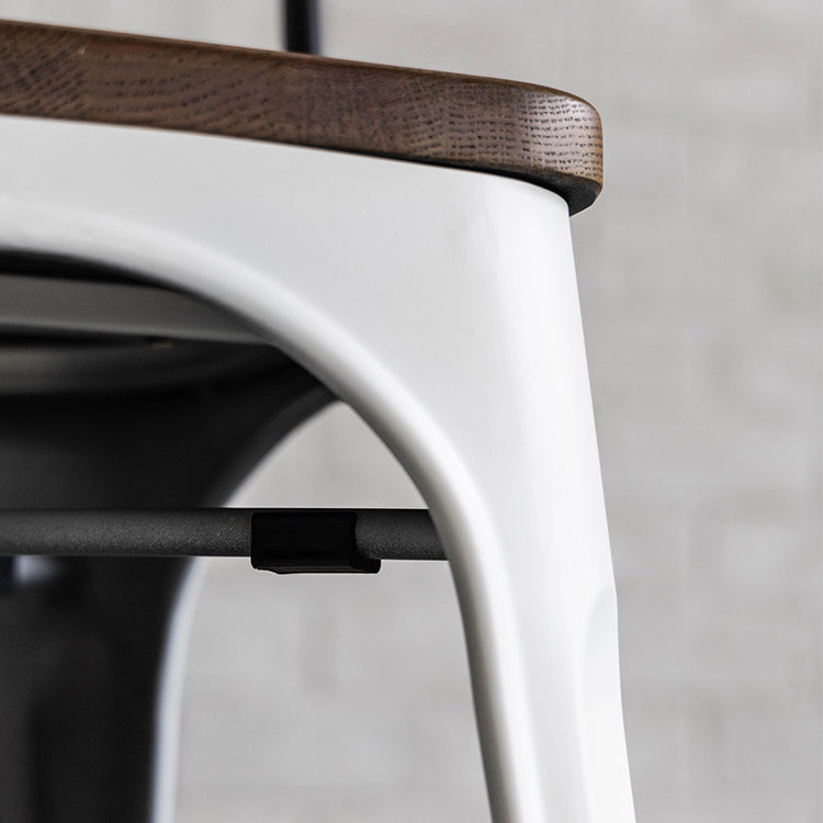 | 商品情報 | 4色のマットなカラーリングが特徴的なスチール製のチェアです。 座面には木を使用し、インダストリアルながらも、温かみのあるデザインに仕上げました。 |