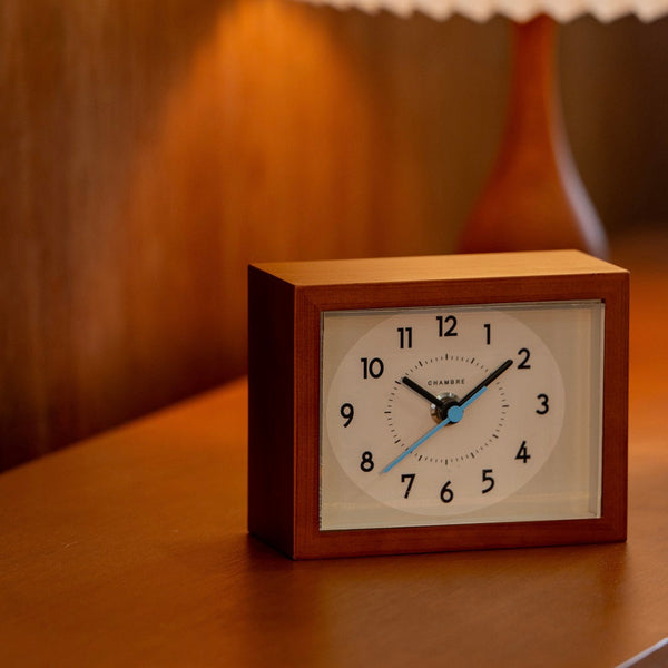商品情報 木枠にひのき無垢材を使用したレトロモダンな置き時計。シンプルながら細部にこだわりが詰まっています。