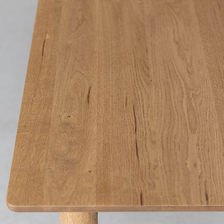 | 商品情報 | 無垢材ならではの質感と、オーク材がもつナチュラルで温もりのある風合いを活かしたダイニングテーブル。丸みがあり優しいデザインは、清潔感と温かみのある空間に仕上がります。 |