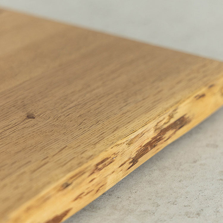 オイル塗装は水分・油分に弱く、長時間放置すると輪ジミやシミの原因になります。木材の表面に施した、無垢の風合いを活かした仕上げです。