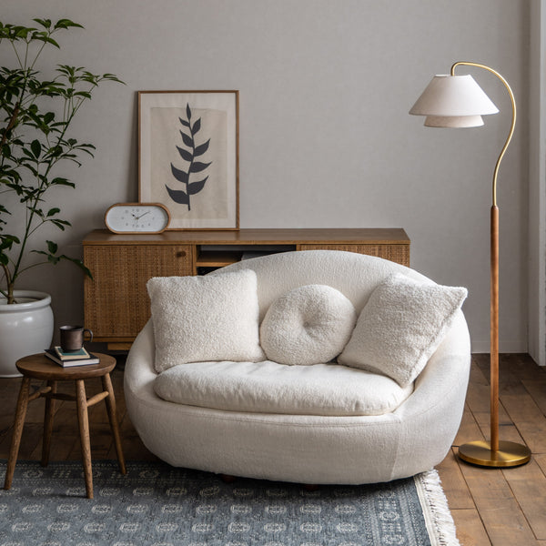 | 商品情報 | レイヤードされたファブリックセードと緩やかな弧を描く支柱がエレガントな印象のフロアライト。柔らかな光のグラデーションが、リビングや寝室の心地よい時間を演出します。 LED電球:対応可 点灯:フットスイッチ コード長:210cm |