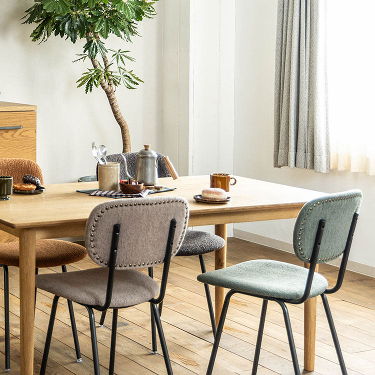 | 商品情報 | 背面の鋲デザインがアクセントのベーシックなフォルムのチェアです。色違い で揃えたくなる豊富なカラーバリエーションが魅力です。 |